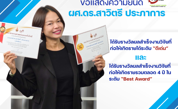 สาขาวิศวกรรมเครื่องจักรกลเกษตรอัจฉริยะ (SAME) คณะวิศวกรรมศาสตร์และเทคโนโลยี มหาวิทยาลัยเทคโนโลยีราชมงคลอีสาน ขอแสดงความยินดีเป็นอย่างยิ่งกับ ผศ.ดร.สาวิตรี ประภาการ อาจารย์ประจำสาขาวิชาฯ ในโอกาสที่ได้รับเกียรติบัตรเชิดชูเกียรติ “รางวัลผลสำเร็จการจัดงานวิจัย งานบริการวิชาการที่ก่อให้เกิดรายได้” จากคณะวิศวกรรมศาสตร์และเทคโนโลยี โดยได้รับ 2 รางวัลอันทรงเกียรติ เมื่อวันที่ 24 ตุลาคม 2568 ที่ผ่านมา ดังนี้ รางวัลดังกล่าวสะท้อนให้เห็นถึงความมุ่งมั่น ทุ่มเท และศักยภาพของ ผศ.ดร.สาวิตรี ประภาการ ในการบริหารจัดการโครงการบริการวิชาการเพื่อสร้างรายได้ให้กับหน่วยงานได้อย่างเป็นรูปธรรมและต่อเนื่อง ทางสาขาวิศวกรรมเครื่องจักรกลเกษตรอัจฉริยะ (AME) ขอร่วมชื่นชมและยินดีในความสำเร็จครั้งนี้ และขอเป็นกำลังใจให้ ผศ.ดร.สาวิตรี ประภาการ สร้างสรรค์ผลงานอันเป็นประโยชน์ต่อมหาวิทยาลัยและสังคมสืบไป
